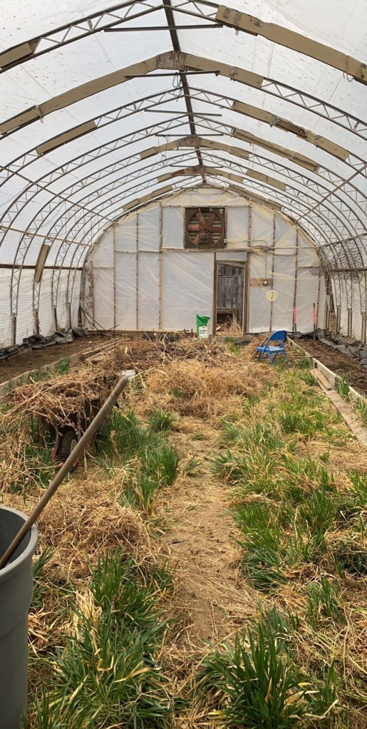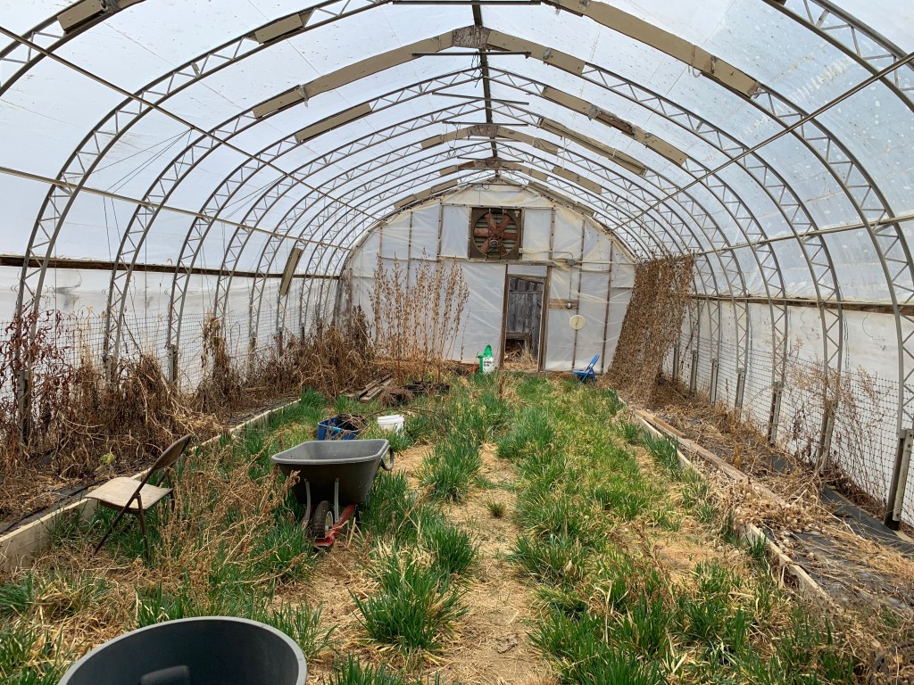 Greenhouse During Clearing (While my Zinnia seedlings are growing)