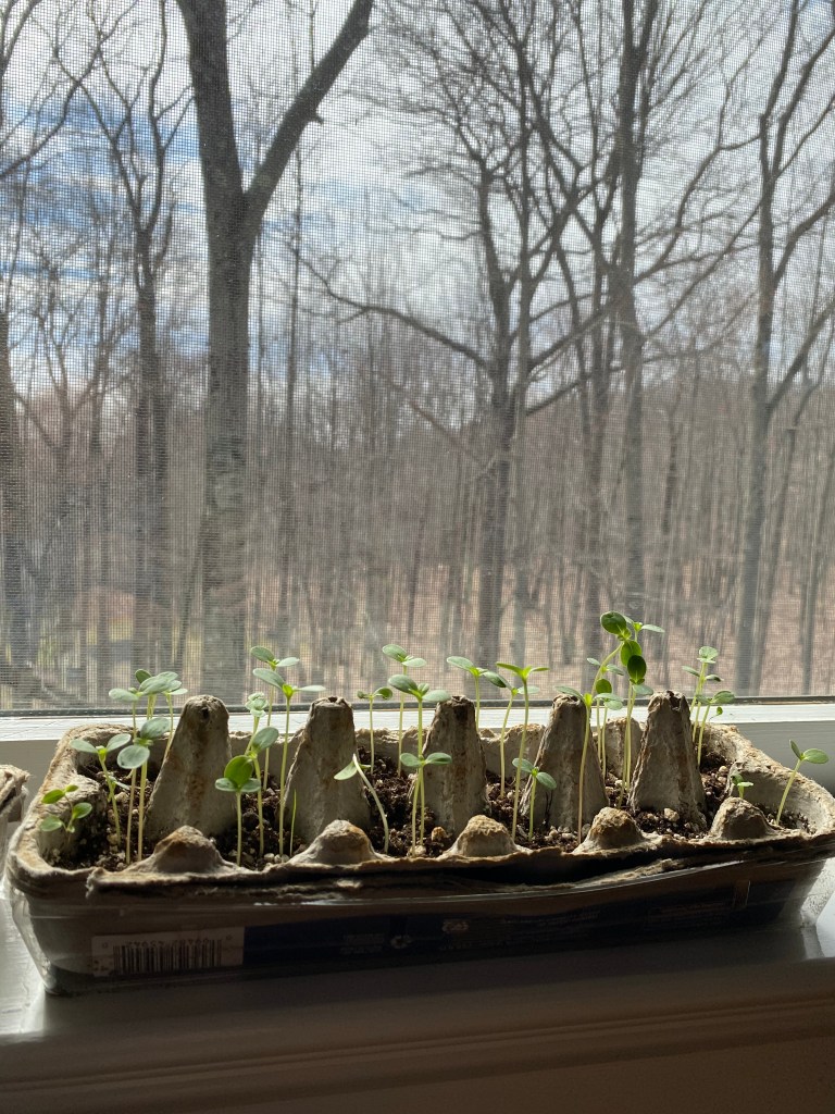 Step: 2: Gather old egg cartons prefereably paper ones so you can easily transplant them into you outdoor garden bed… I chose to start my seeds early this year so I have solid growth a few weeks faster than I would had I waited to start my seeds outdoors. You are going to want to add soil to each egg slot and then add your seeds. With a vert light layer of soil, cover your seeds. Gently give the seeds a misting of water to not disturb your newly placed seeds. Put in the sunshine and wait 3-10 days.